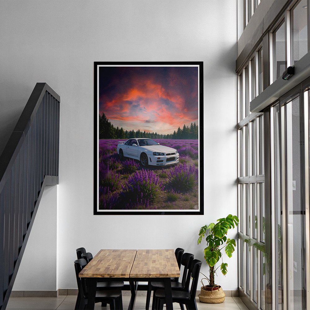 - Title: Nissan GTR R34 – Midnight Velocity – Digital Art Print