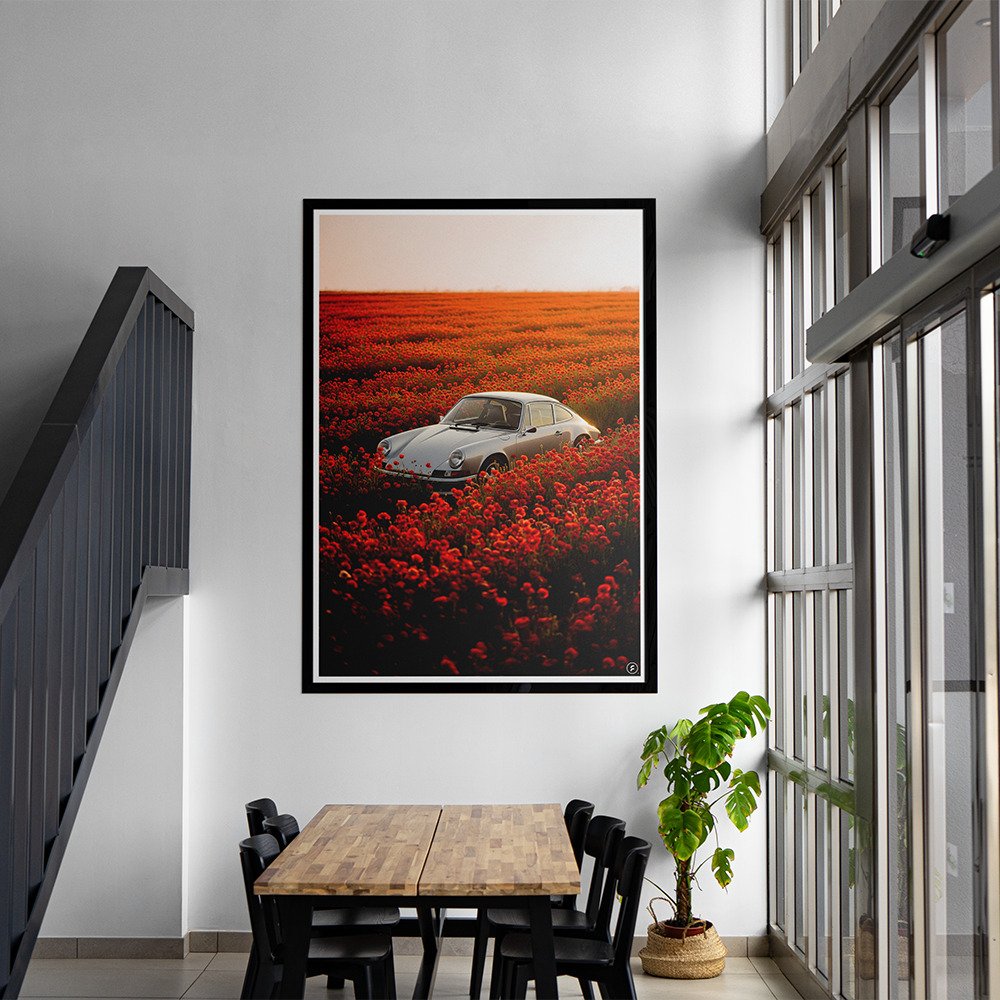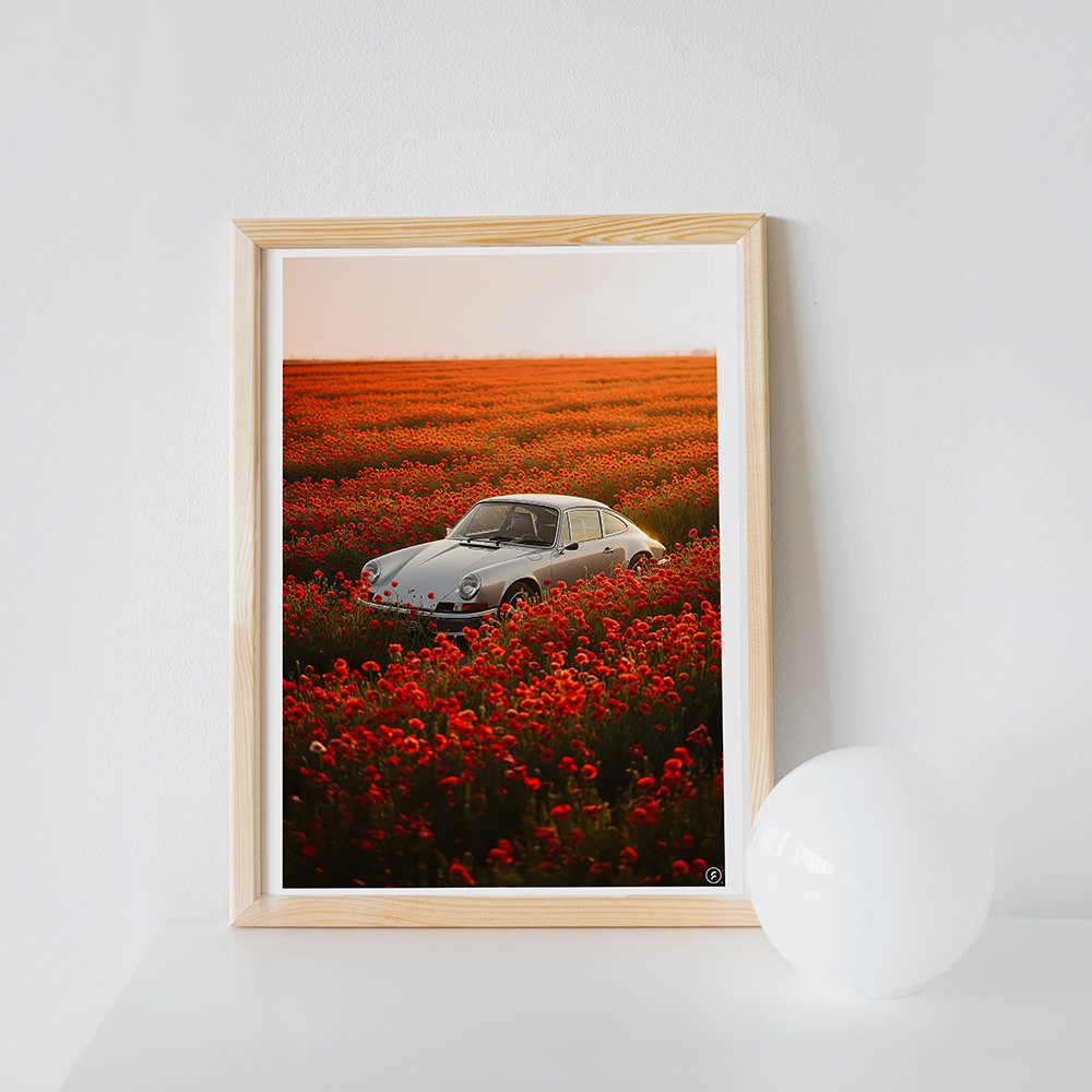 Transform your walls with the Porsche 911 Blossom, a captivating mix of speed and nature. Featuring a Porsche 911 surrounded by vibrant flowers, this artwork combines performance with elegance, perfect for automotive and floral art enthusiasts alike.