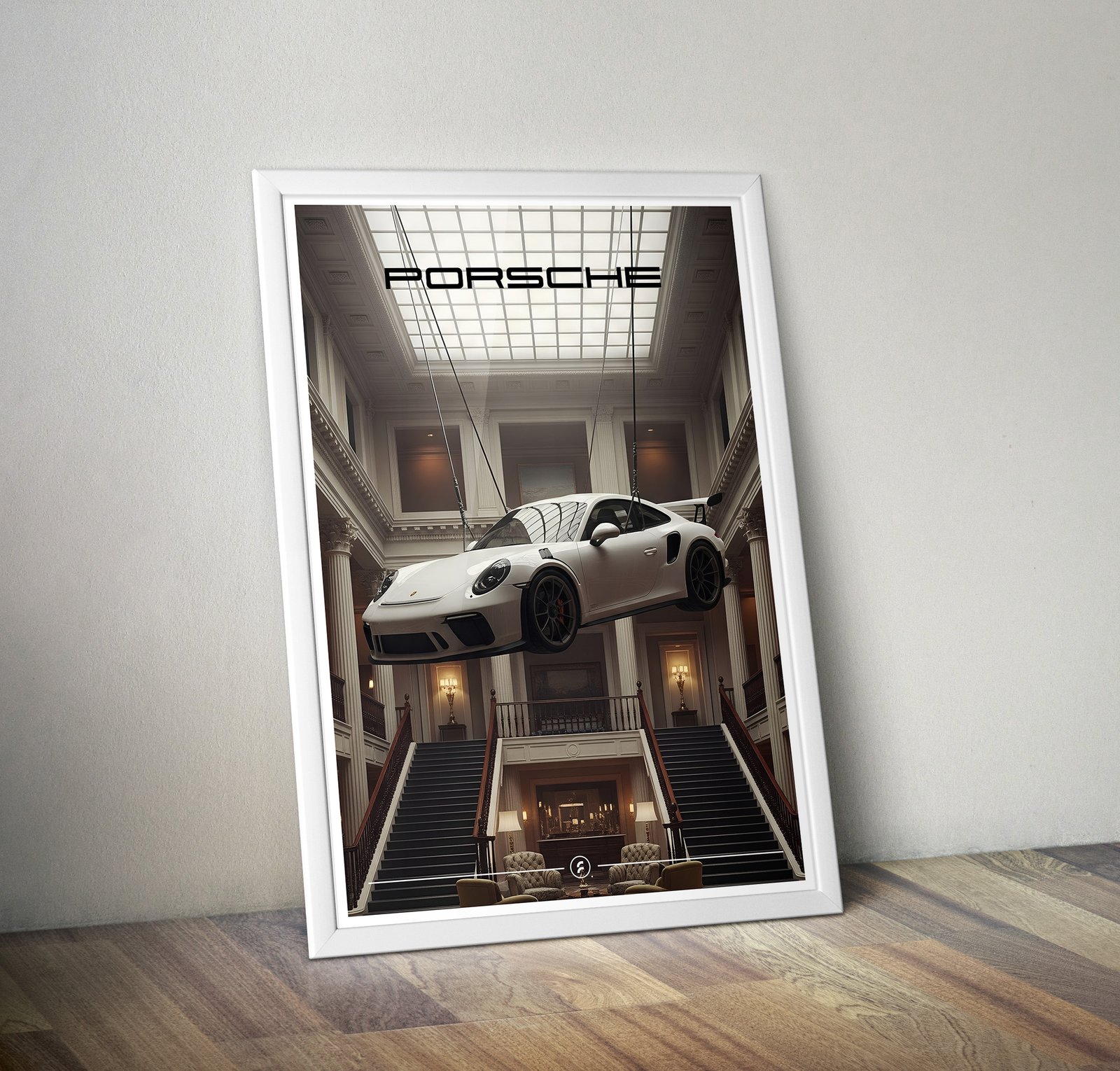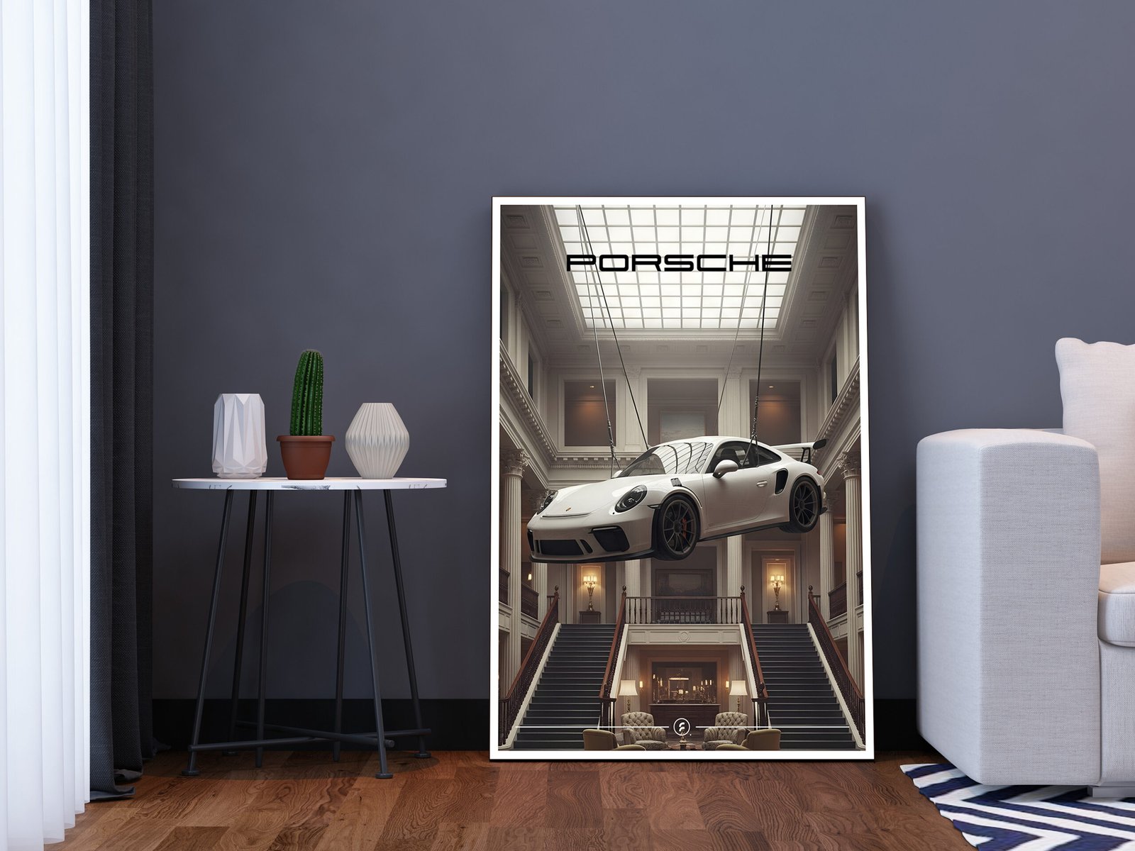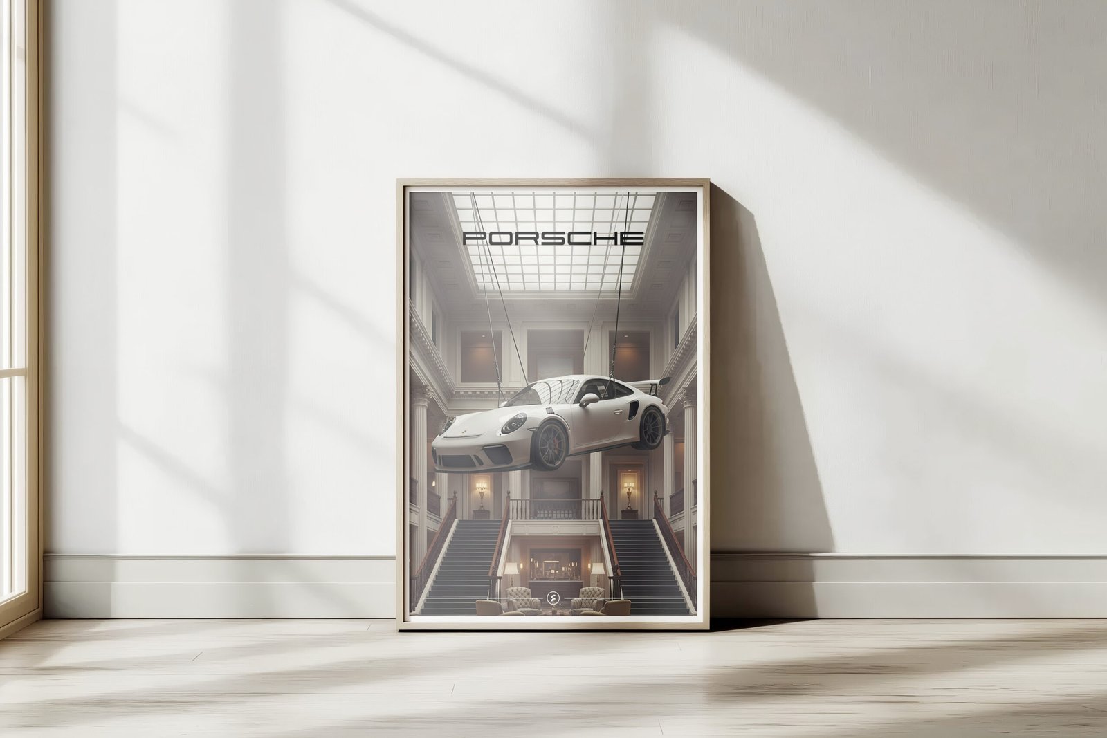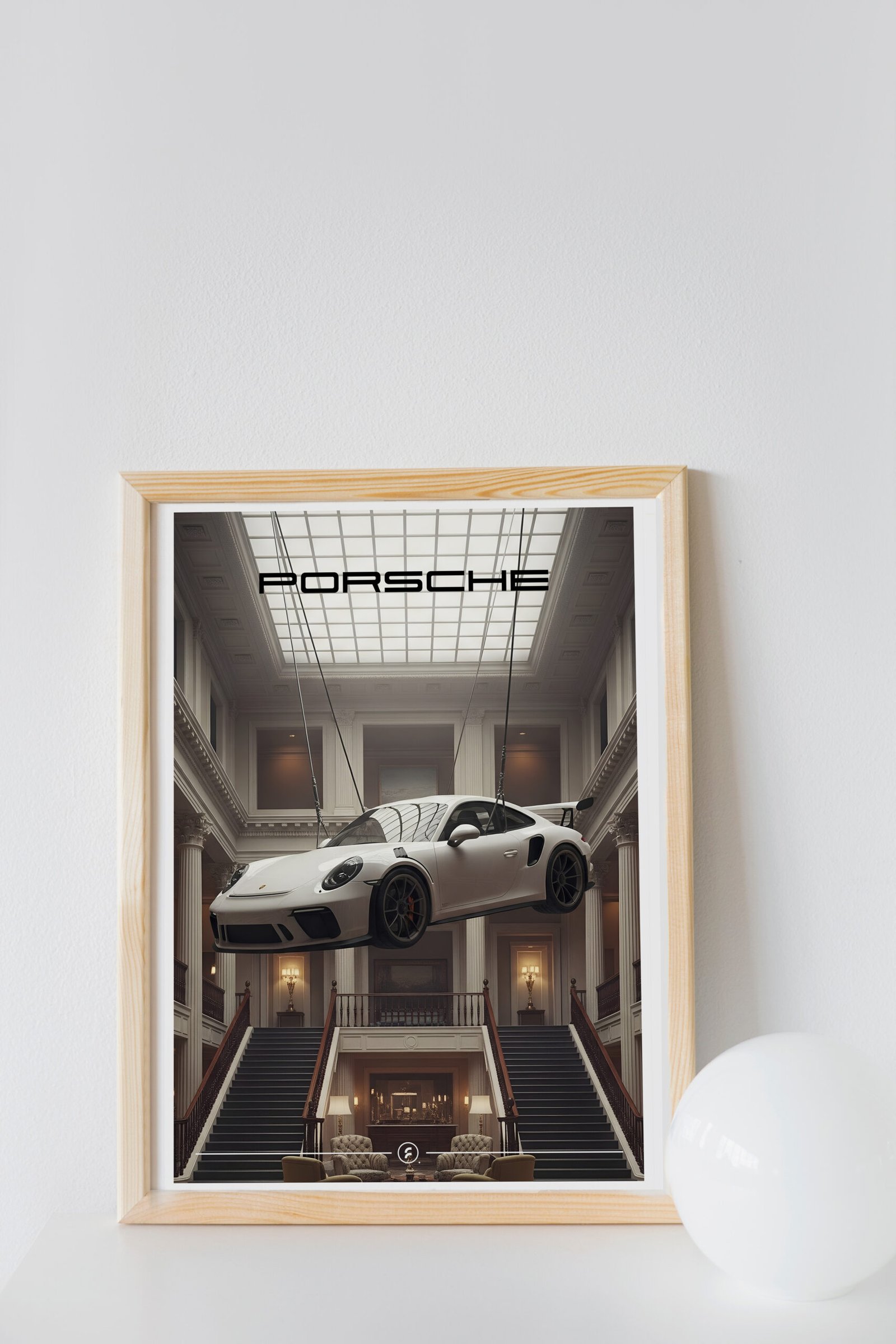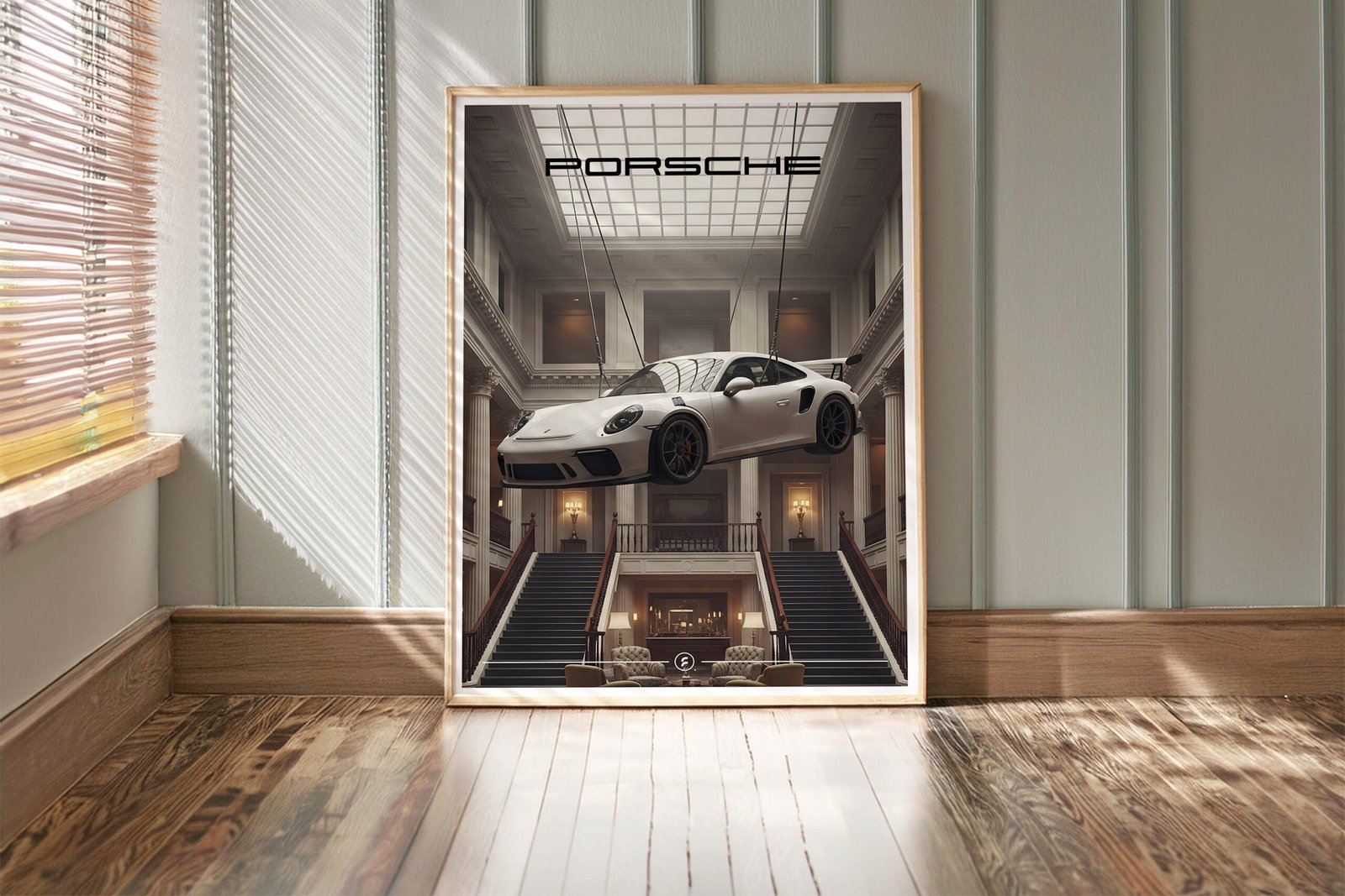 Instant Download | Porsche 911 in Room Flying – Digital Art | Garage & Man Cave Decor